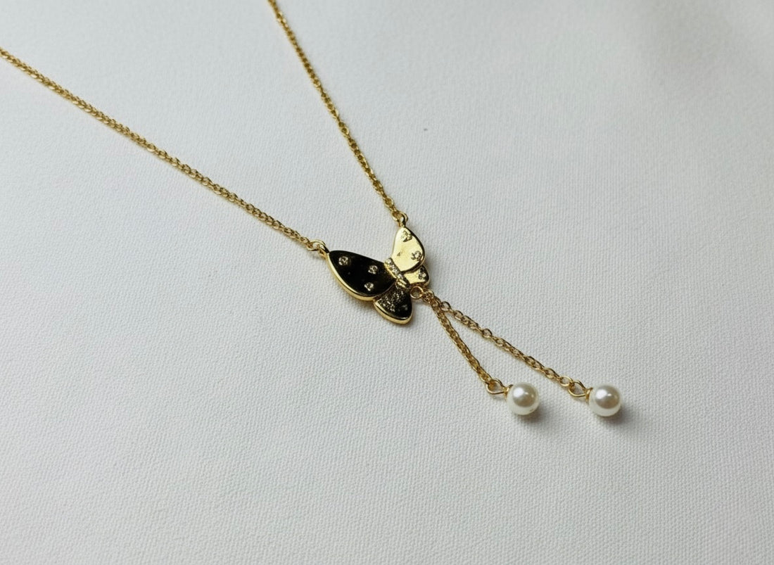 Butterfly Noir Drop Necklace β By Girly Jewells π