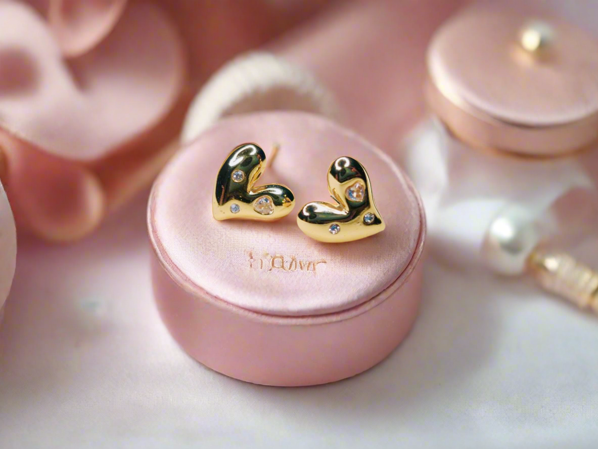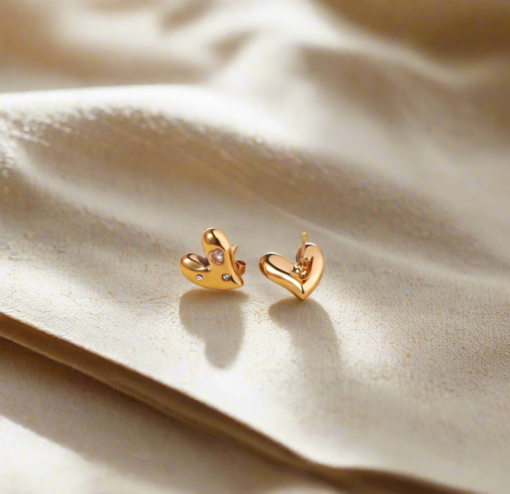 Amore Heart Studs by Girly Jewells πŸ’› – 18K Gold Plated Elegance ✨