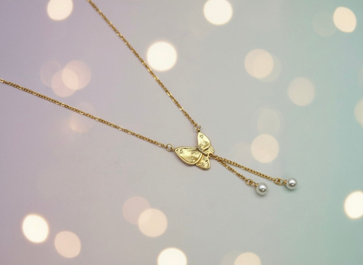 Butterfly Noir Drop Necklace β By Girly Jewells π