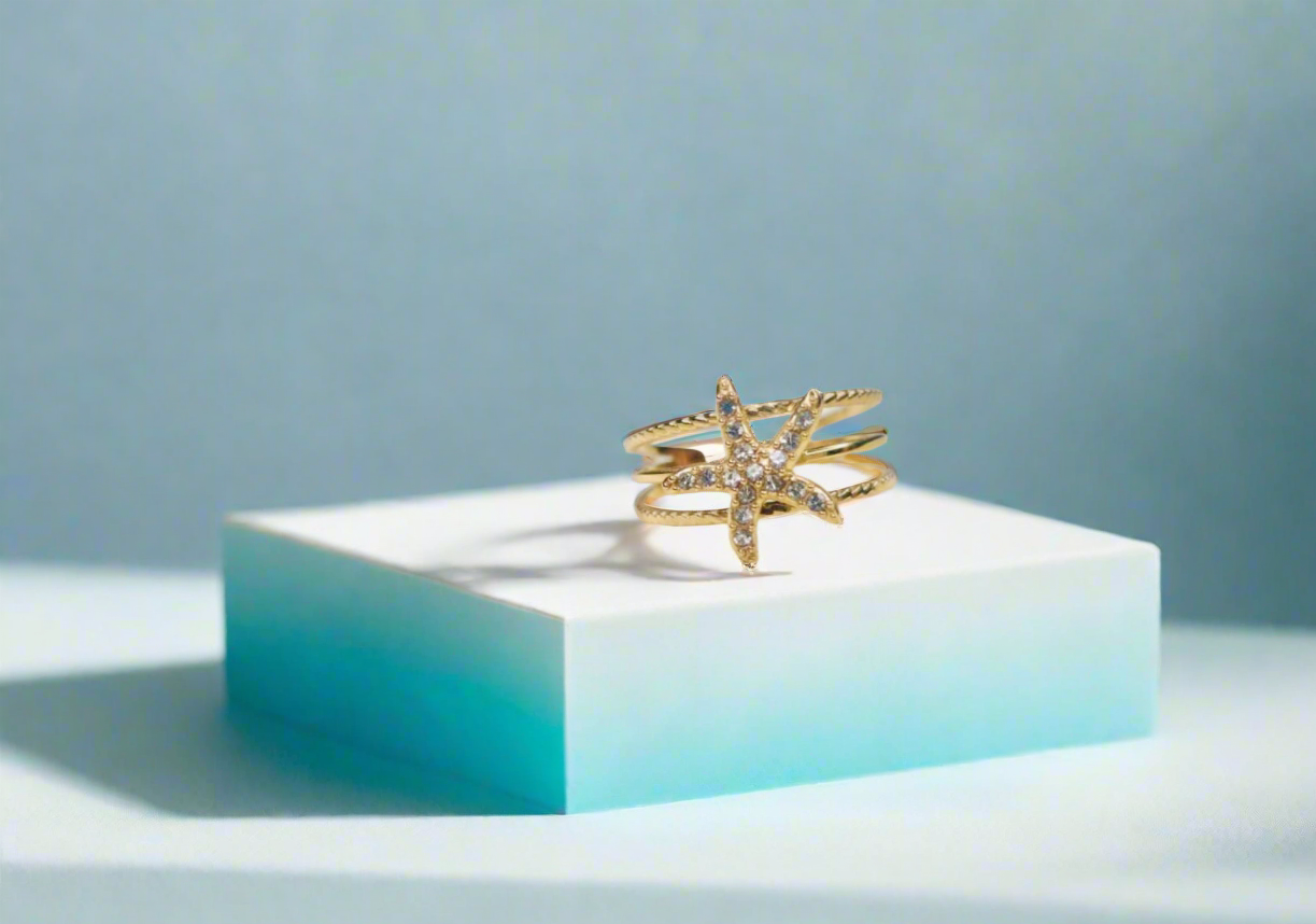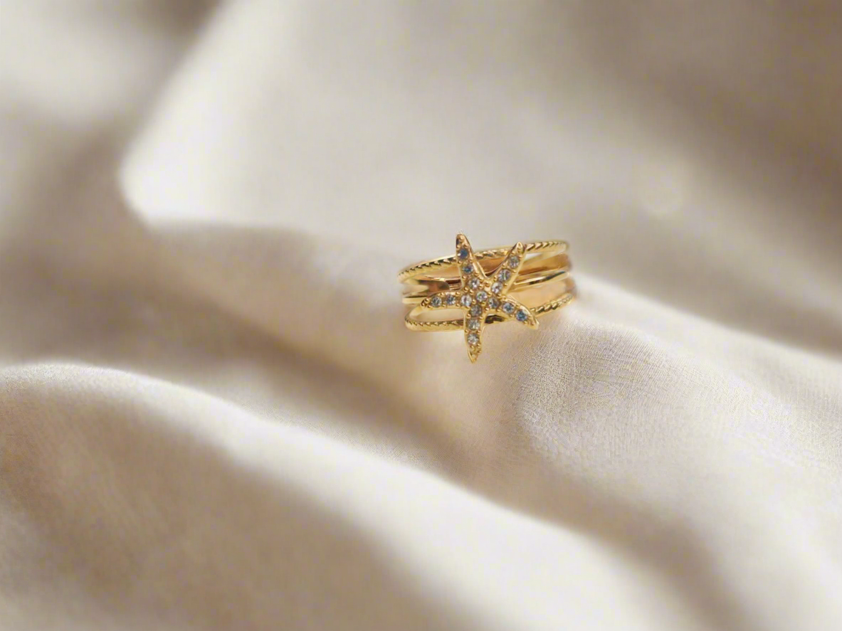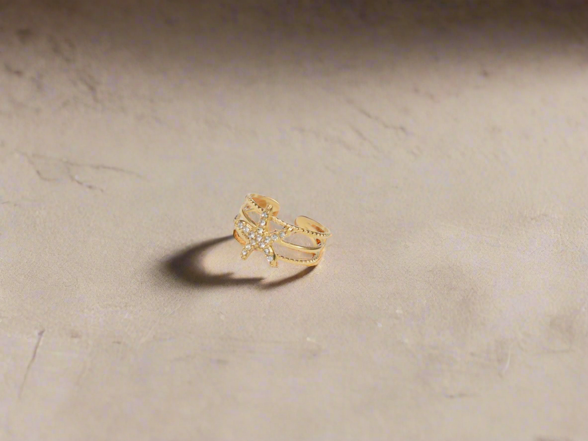 Plated in luxurious 18K gold ✨this ring showcases delicate star-inspired motifs ⭐ that shimmer with every movement.