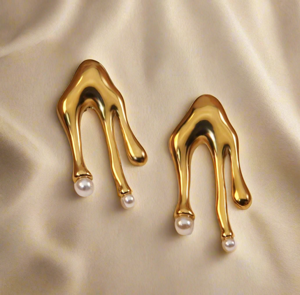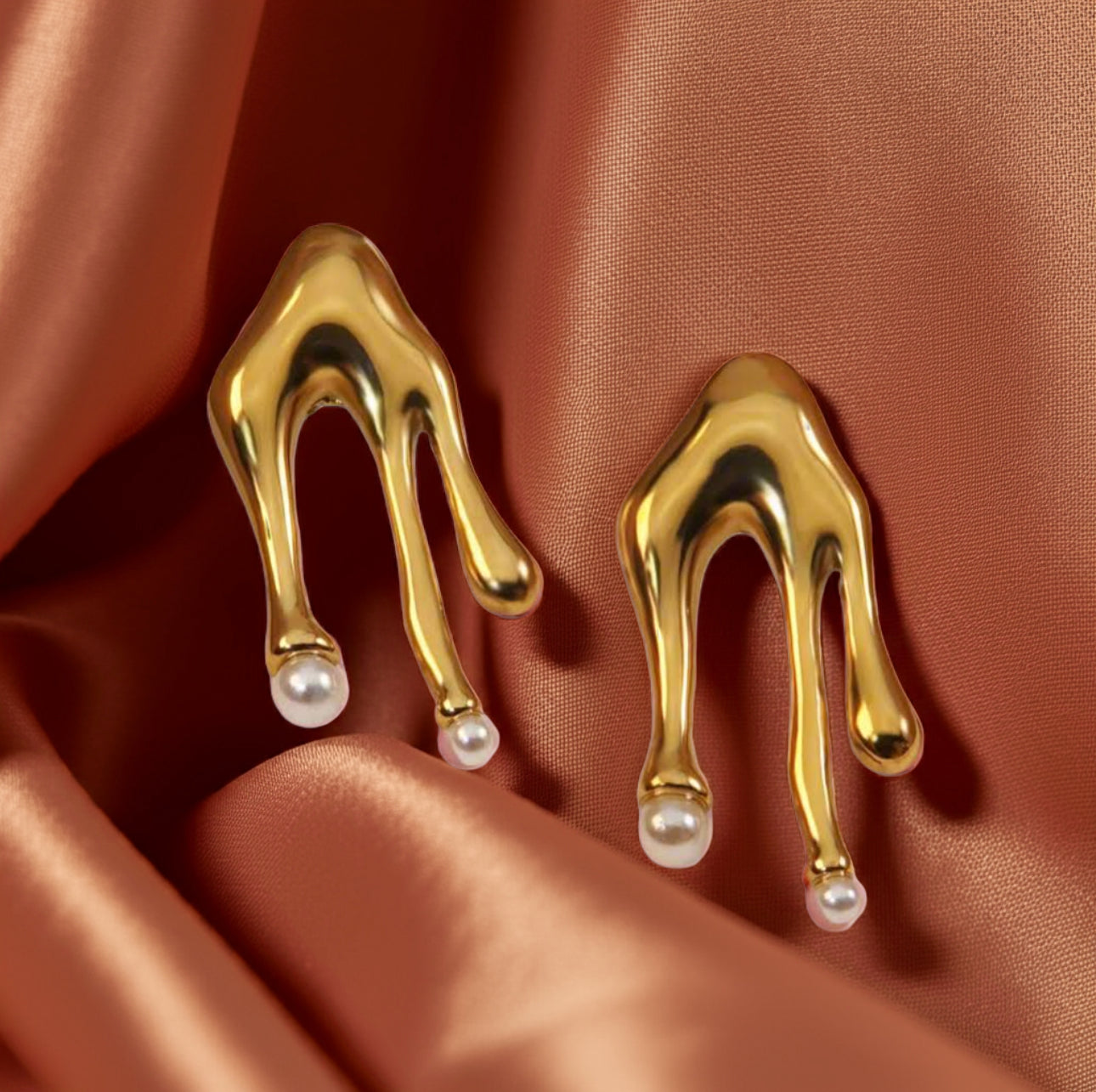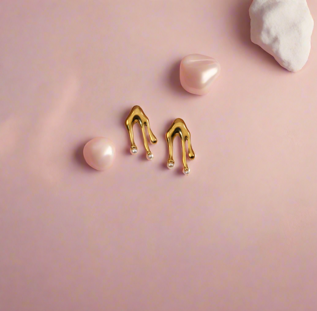 Inspired by the natural flow of molten gold and adorned with luminous faux pearls, each piece is a symbol of fluid elegance and unapologetic femininity. The radiant gold-tone finish shines bright, while the delicate pearl drop adds that dreamy, classic touch