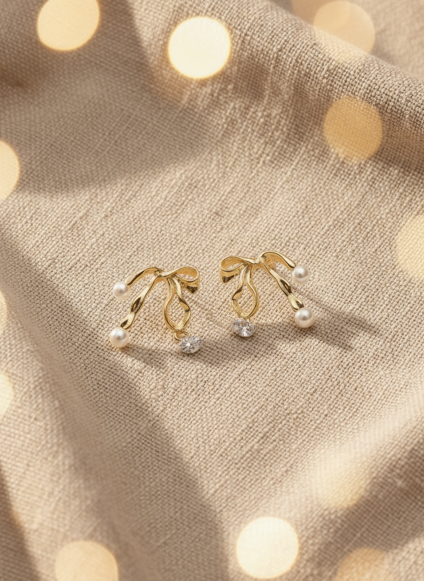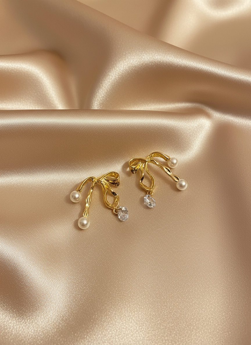 Inspired by the calm beauty of desert sunsets, this design brings together the warmth of molten gold and the purity of pearls. π The earrings flow like golden dunes soft, curvy, and radiant while the pearls rest like hidden treasures beneath the light.π