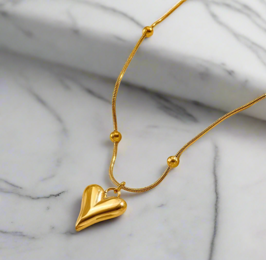 Crafted in a glowing gold finish, this pendant features a sleek, puffed heart charm that symbolizes eternal love, self-worth, and effortless grace. 💫
